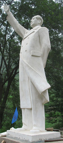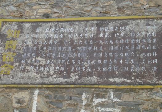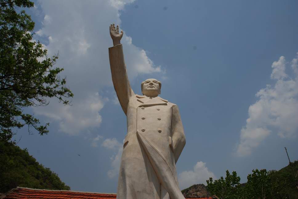 一进寨子,首先映入眼帘的是一尊纯白毛主席挥手致意的塑像,一条满是鹅卵石的小河贯穿村子南北,河水清澈见底,河两边绿树成荫,沟壑梯田,那低矮的乡间小屋,村头闷头吃草的黄牛,还有那山上一群裙无人看管的羊群……向人们诉说这一种古老、淳朴、浓郁的乡间气息。 毛主席塑像后面是现在的展览室,