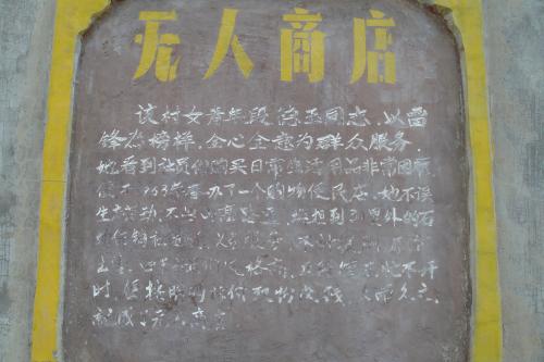 无人商店是李崮寨创办的一个奇迹,体现了“公字沟”的魅力。自1967年开始,李崮寨已“公”字当家,狠斗私字一闪念,私字在此无立足之地。无人商店创办10年,人们按照货款标价自主取放货款,从未发生过任何短款事件。现在的“无人商店”遗址依然被保存在这。